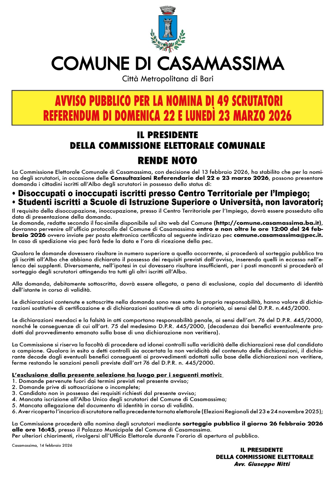 Si terrà domenica 22 e lunedì 23 marzo 2026 il referendum popolare confermativo della legge costituzionale recante "Norme in materia di ordinamento giurisdizionale e di istituzione della Corte disciplinare", approvata dal Parlamento e pubblicata nella Gazzetta Ufficiale della Repubblica italiana n. 253 del 30 ottobre 2025.